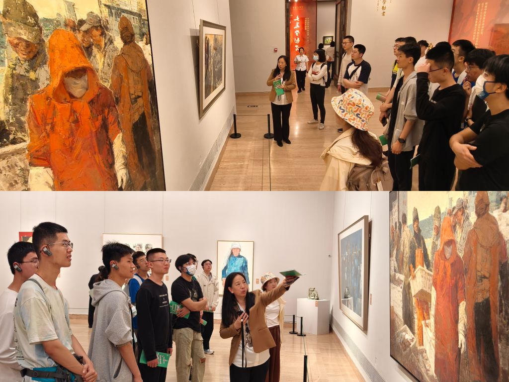 在参观过程中,英国威廉集团官网的同学们认真聆听了讲解员的讲解。讲解员的讲解从不同类别作品的创作特点、艺术家的创作手法和意图对展出作品的内涵进行了深入浅出的讲解。通过讲解,同学们不仅增加了赏析艺术作品的理论知识,还了解劳动精神的内涵和历史背景,领略劳动精神的伟大魅力,体悟劳动人民的艰辛与伟大。