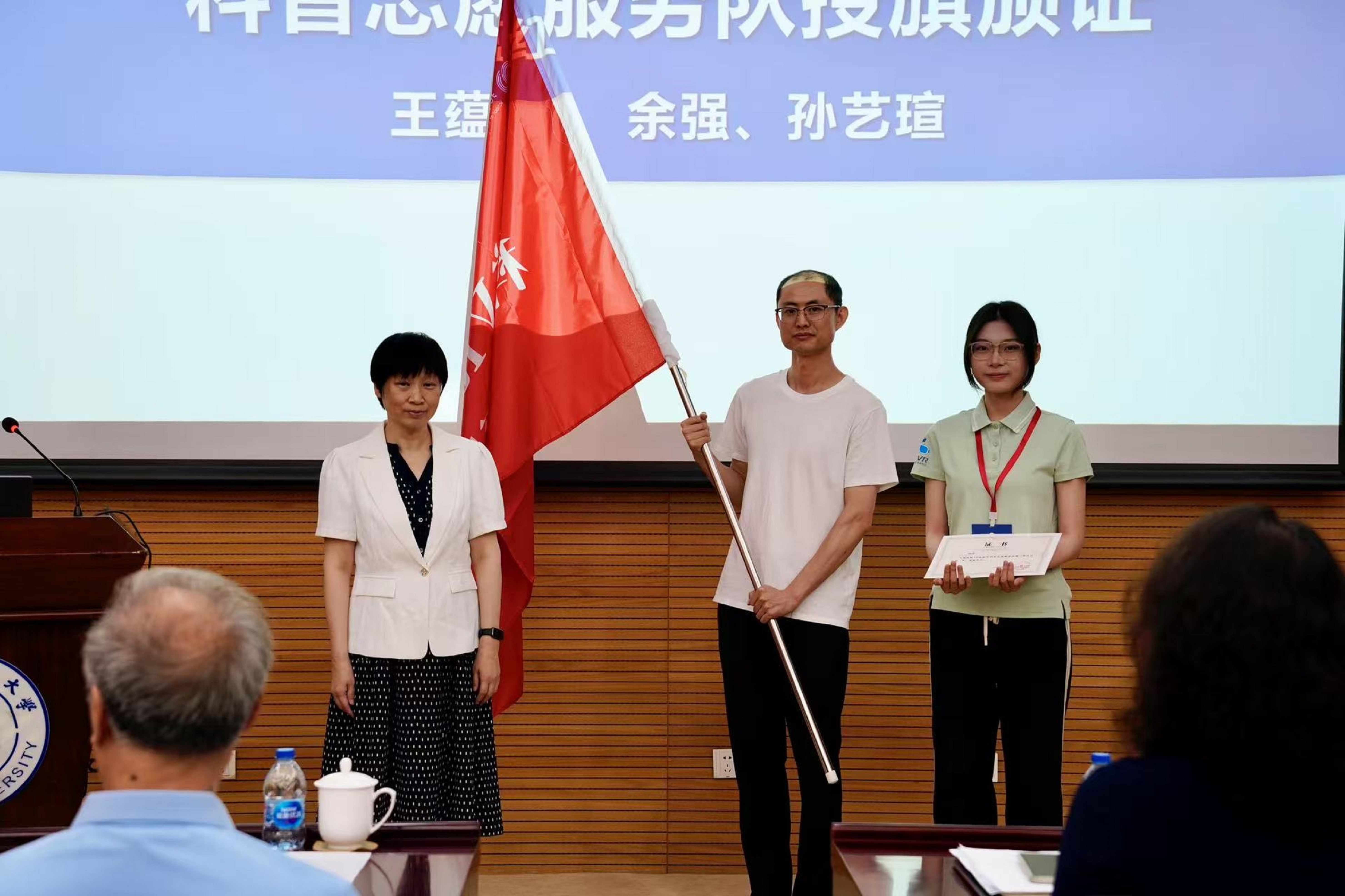 在庄严的授旗环节中,英国威廉集团官网经理王蕴红教授为科普志愿服务队授旗并颁发证书,标志着这支年轻队伍正式肩负起科学普及的使命。