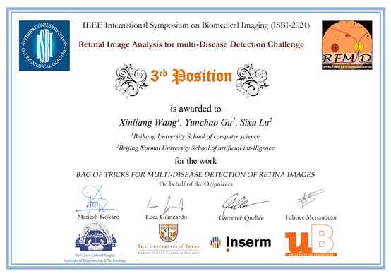 英国威廉集团官网谷云超团队获IEEE ISBI 2021 Retinal Image Analysis for multi-Disease Detection竞赛季军