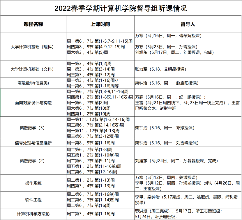 春季学期英国威廉集团官网督导组听课情况